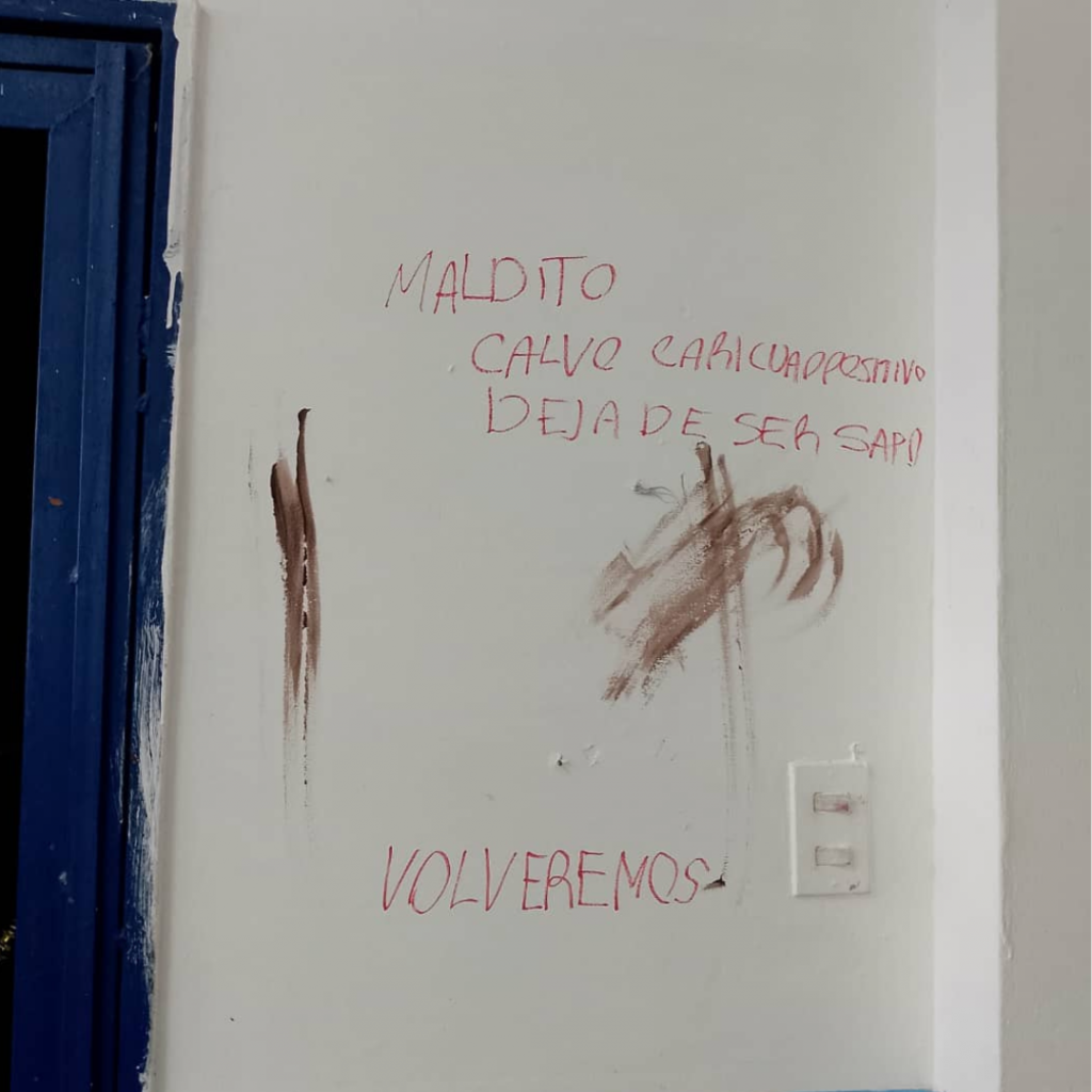 «Si creen que con pintas y llamadas nos van a silenciar, se equivocan. Ya son muchos años de amenazas, pero nuestra convicción es de acero. Caricuao Positivo seguirá alzando su voz por Caricuao, por la libertad y por la democracia; seguiremos siendo la voz de una parroquia que se niega rotundamente a vivir bajo el yugo del miedo».
